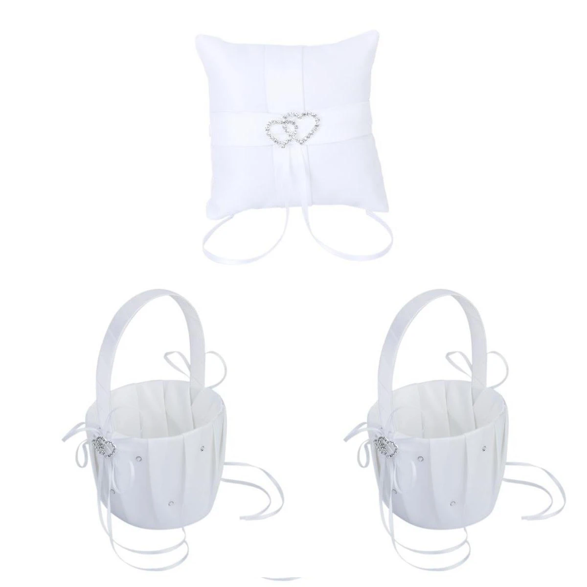 BUY 2 Piece White Flower Girl Basket Crystal Rhinestone Decor And 1 Bag