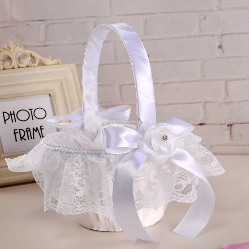 cheap Wedding Basket Lace Bow Bride Flower Girl Flower Basket Wedding Party Supplies HG99 discount