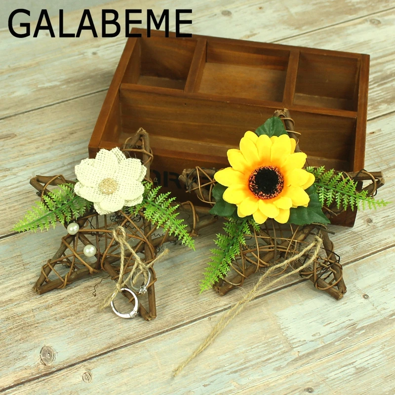 buy cheap 15cm Natural Rattan star Stem Branch Wreath stars Ring Bearer ring holder Vintage ring pillow rustic wedding decoration one of the best