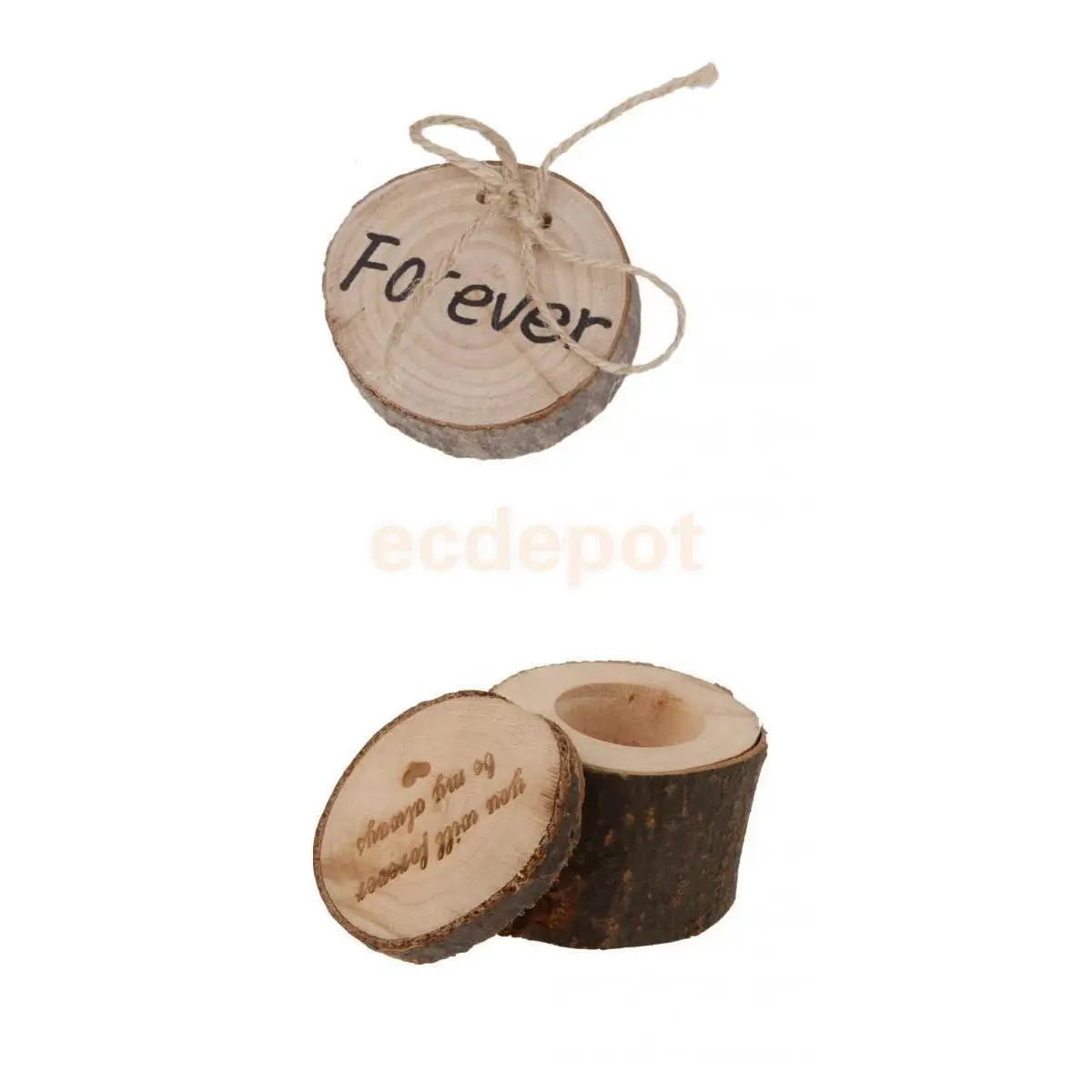 buy buy 2pcs Set Rustic Round Forever Wood Ring Bearer Pillow Cushion Holder + Wood Box cheap