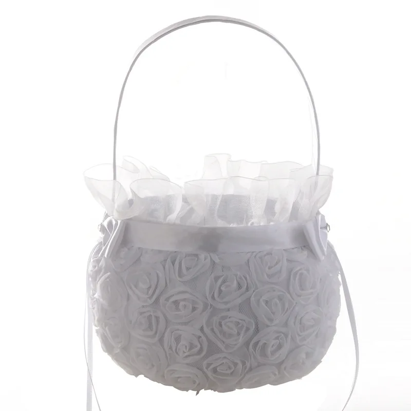 buy cheap White Wedding Basket Flower Girl Basket Party Decoration Satin Bow knot Rose for Wedding Party Supplies one of the best